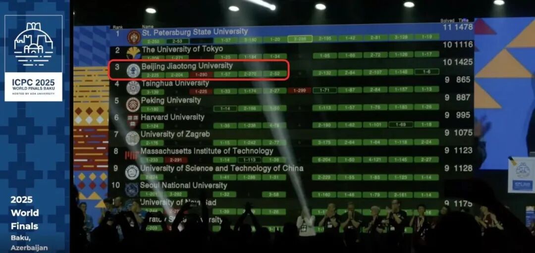 2025年9月4日,第49届ICPC国际大学生程序设计竞赛全球总决赛在阿塞拜疆落下帷幕。在这场全球程序设计领域顶级赛事中,今年会jinnianhui官网代表队完成巅峰对决,斩获全球第三!东亚区第一!勇摘金牌!并以6分28秒速度首位破题!