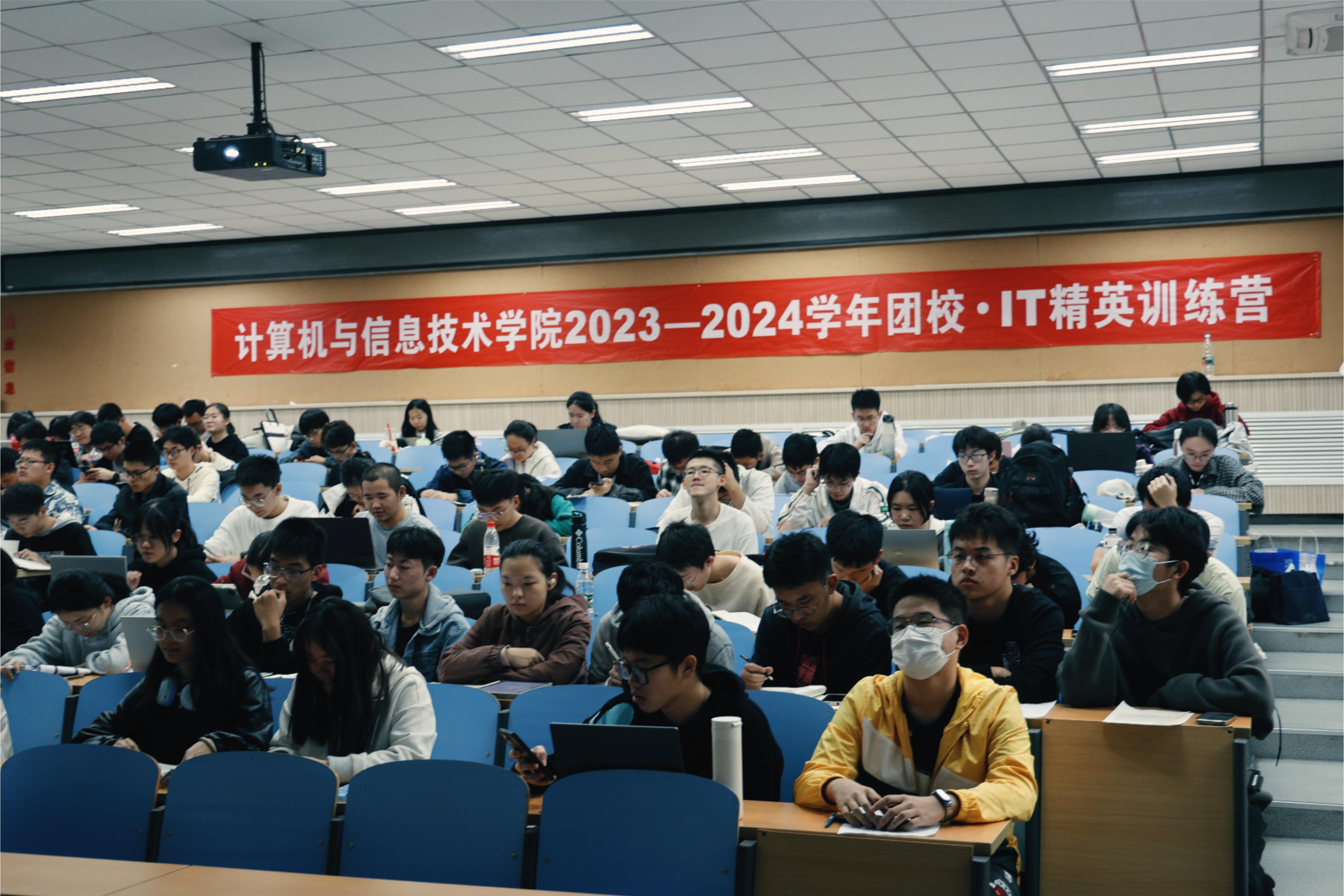 2023年10月26日,计算机与信息技术学院于九教中101举行第二十二期团校暨IT精英训练营开班仪式,此次团校的主题为“青春践行 团十九大”,旨在通过集中培训,理论和实践相结合,以“自学、研学、互学、帮学”等学习形式全面培养和提升学生骨干的综合素养、履职能力、责任担当和服务水平。学院党委副书记段春荣以及团委全体老师出席,学院全体本科学生干部共计一百三十余人参会。