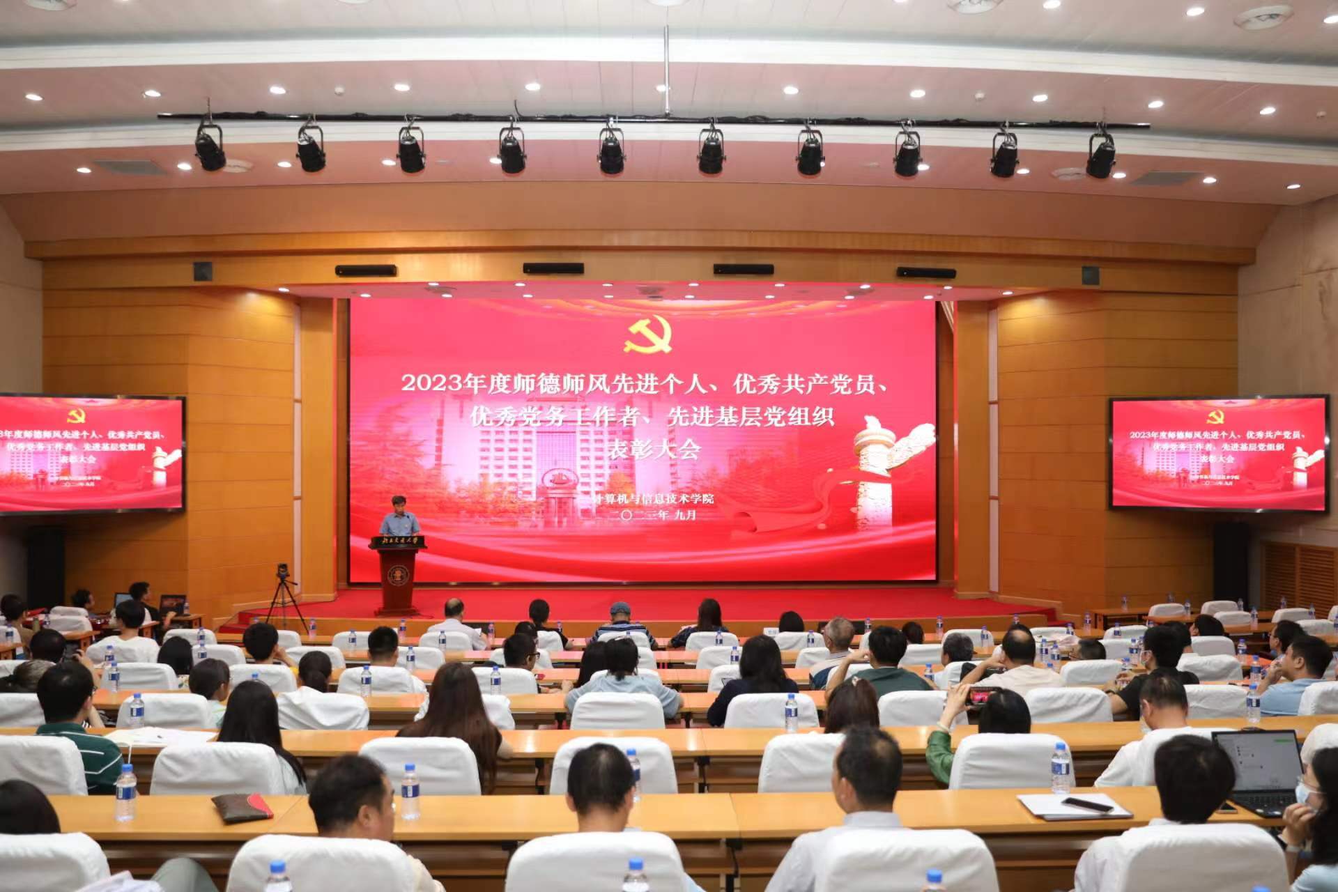 为推动学习贯彻习近平新时代中国特色社会主义思想主题教育走深走实,认真落实党的二十大精神和习总书记关于教育的重要论述,选树优秀典型,引导今年会官网教师群体坚守立德树人初心、潜心治学、开拓创新,锻造品格高尚、专业过硬的师资队伍,增强教师党员先锋模范作用和党支部战斗堡垒作用的发挥,9月7日下午,今年会jinnianhui官网2023年度师德师风先进个人、优秀共产党员、优秀党务工作者、先进基层党组织表彰大会在科学会堂召开。大会由院党委副书记段春荣主持,校党委组织部副部长赵艳娥、校党委教师工作部副部长陈劲松受邀出席。