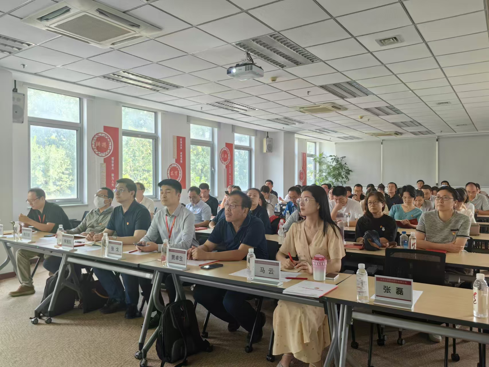 学院党委书记贾卓生、副院长(主持工作)李浥东带队,学院70余位教职工党员首先分组参观了龙芯中科总部展厅,在副总裁张戈的解说带领下,详细了解了龙芯中科的发展历程、核心技术和产品应用情况。特别是最新一代国产CPU的研发进展及其对于保障国家信息安全所起到的关键作用,给党员留下了深刻印象,纷纷表示要把这部分内容融入到课程思政中,增强学生对国内自主可控技术的理解和认识,同时激发学生爱国情怀和技术报国的热情。随后,党员们观看了龙芯中科企业宣传片,片中不仅展示了公司在科研创新方面取得的重大突破,同时也反映了龙芯党总支部带领全体员工积极投身于我国信息技术自主创新事业中的奋斗历程,进一步激发了党员的责任感和使命感。