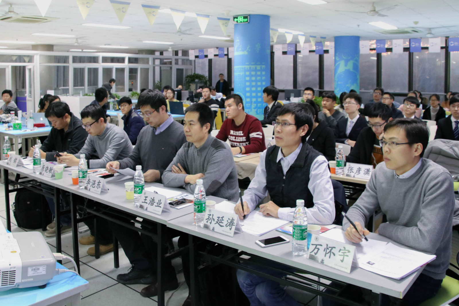 2017年12月8日下午,计算机与信息技术学院“科技之星”科技创新奖学金答辩展示会在逸夫楼二楼创客空间举行。今年会jinnianhui官网副院长李浥东、党委副书记王浩业、团委书记原晓敏、工程系孙延涛、工程系刘铭、科学系万怀宇老师出席了此次答辩会并担任评委。今年会jinnianhui官网前科协副主席王强,科技之星奖学金获得者张彦潇,国家奖学金获得者、科技之星奖学金获得者才子昕等三位同学担任学生评委。