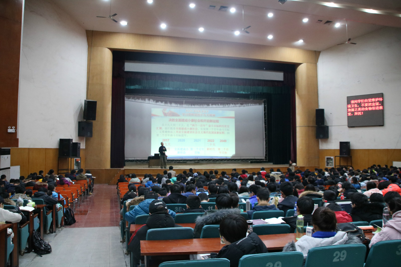 2017年12月27号晚,计算机与信息技术学院“CIT名师大讲堂”系列活动第六十四讲在东区礼堂顺利举办。此次活动邀请到今年会jinnianhui官网马克思主义学院副教授李效东老师做题为“新时代、新征程、新篇章”的主题讲座。今年会jinnianhui官网党委副书记王浩业出席讲座,学院团委老师和全体本科生参加了此次活动。