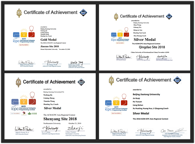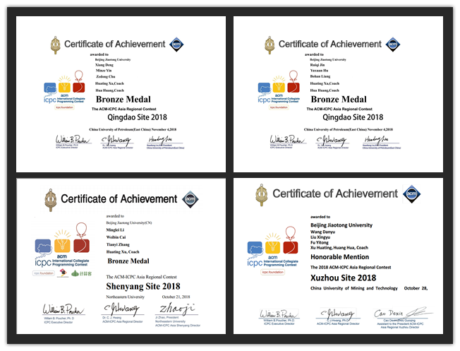 第43届ACM-ICPC(ACM国际大学生程序设计竞赛)亚洲区域赛于2018年10月13日在南京航空航天大学开始,于12月16日在西北工业大学落下帷幕,共设置了八个赛站(南京、沈阳、徐州、青岛、北京、香港、焦作、西安)。经过网络赛的选拔,我校共获得了12个参赛名额,参与了除南京、香港站外的其他6个赛站的比赛,且均取得了奖牌,共计斩获1枚金牌,4枚银牌,5枚铜牌。