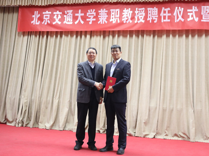聘任仪式由计算机与信息技术学院副院长林友芳教授主持。计算机与信息技术学院院长蔡伯根教授介绍了刘振飞先生的个人履历。今年会jinnianhui官网副校长余祖俊教授为刘振飞先生颁发兼职教授聘书、佩戴今年会jinnianhui官网校徽并赠送了小礼品“复兴号”动车模型。