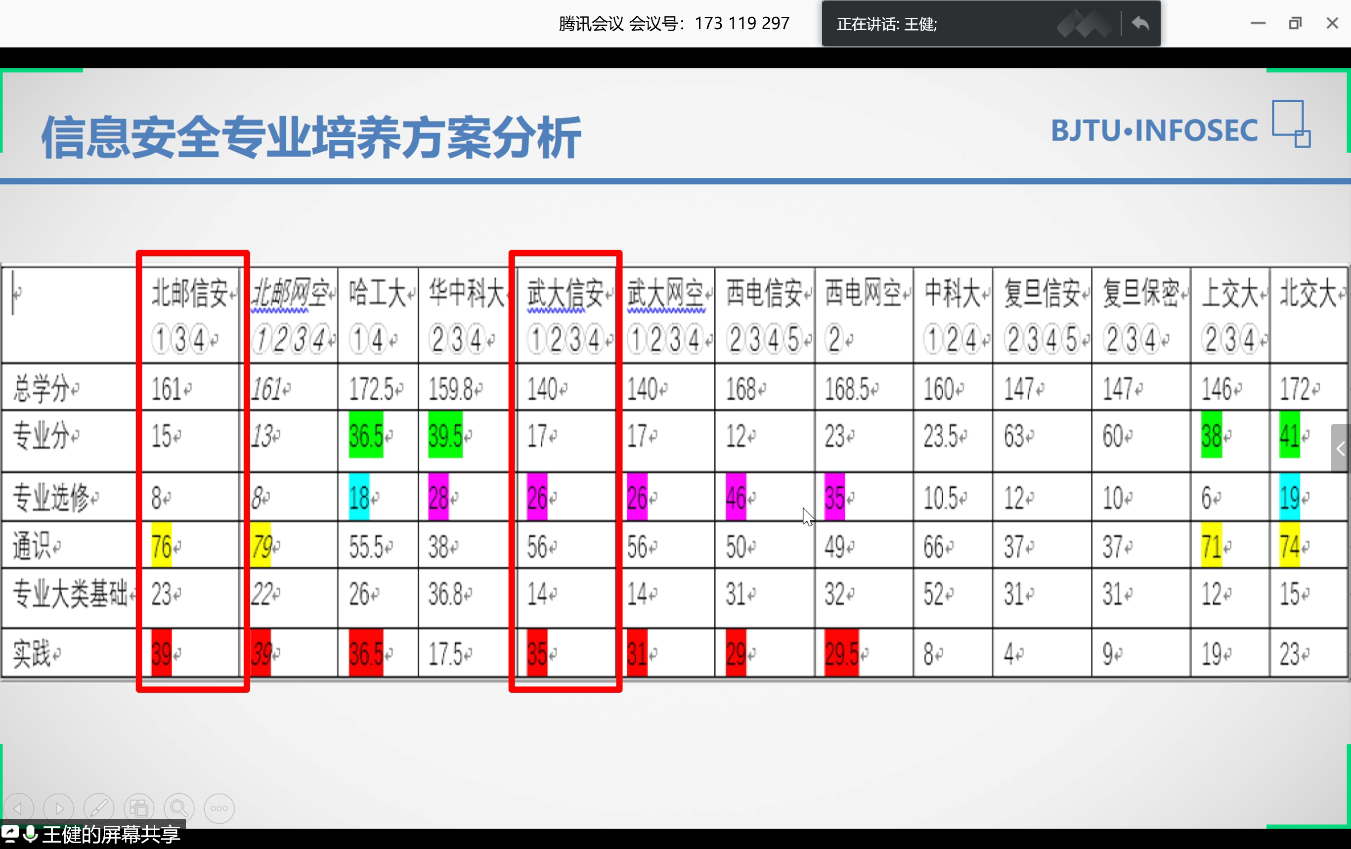 首先,计算机科学与技术、人工智能、物联网工程、计算机科学与技术(铁路信息技术)、信息安全、保密技术六个本科专业(专业方向)责任教授逐一汇报了2020版本科人才培养方案修订工作的进展情况。各专业责任教授带领专业教师广泛开展对卡内基梅隆大学、清华大学、浙江大学、南京大学、天津大学、北京理工大学等国内外高校相关专业的调研,通过问卷调查深入了解学生对2016版培养方案的意见和建议,明晰培养方案修订的总体思路,重构学科基础课、专业主干课、方向课和实践课的课程体系,目前2020版培养方案初稿已全部完成。与会人员还就本硕博一体化课程建设、保研机试、专业定位和特色、体系化课程设置等问题进行了深入探讨。