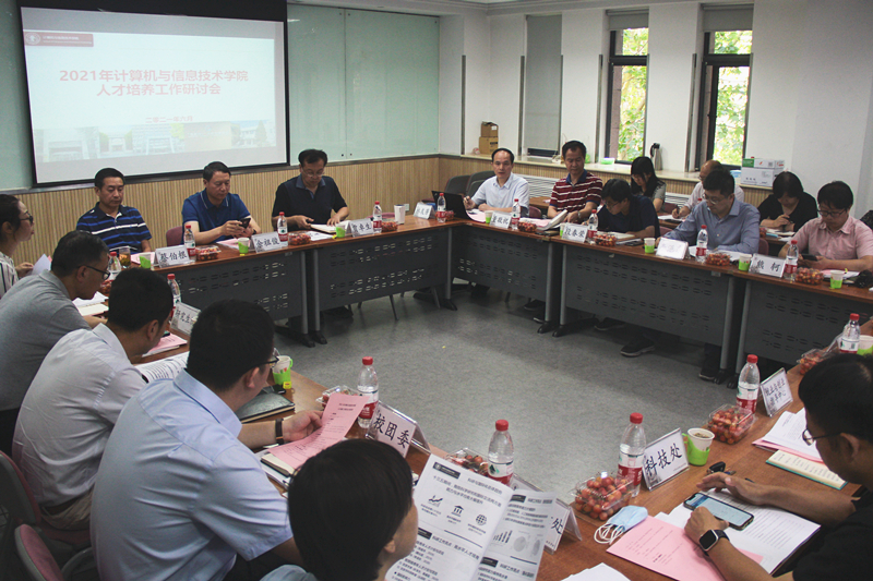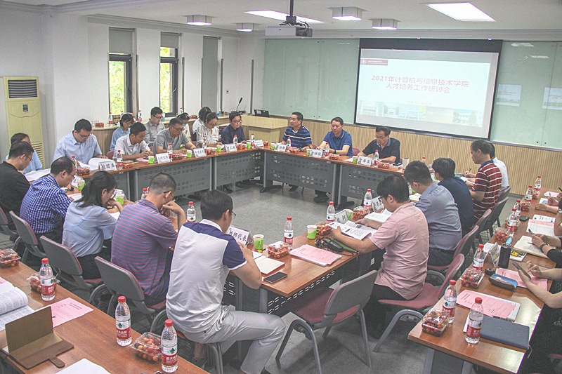 林友芳围绕导师立德树人根本任务,阐述了十三五期间研究生招生、课程建设、过程管理与全流程质量监控等各项改革措施所取得的成效,强调不断完善高质量人才培养体系的重要意义。熊轲具体介绍本科生人才培养情况,学院坚持“以本为本”的人才培养理念,从一流国家级专业建设、“金课”建设、课程思政建设、中外合作办学等方面介绍了学院近几年的具体做法和成效,并提出了后续主要工作思路。段春荣重点阐述了学院“五育并举”培养体系中第二课程的作用发挥情况,学院通过组织运动会、学科竞赛、社会实践、创新创业等各类活动丰富第二课堂,加强对学生德智体美劳的引导。董敬祝强调了三全育人的重要性,从研究生综合素养教育的重要意义、基本现状及存在问题入手,介绍了学院构建IT类研究生综合素养平台的主要举措。李浥东介绍了十三五期间学院在科研及国际化方面的工作思路及取得的丰硕成果,近几年学院通过重视高水平人才培育、强化基础研究、甄选国际合作伙伴、引进优秀师资力量等举措,在科学研究和国际交流方面能力与水平均有大幅提升。