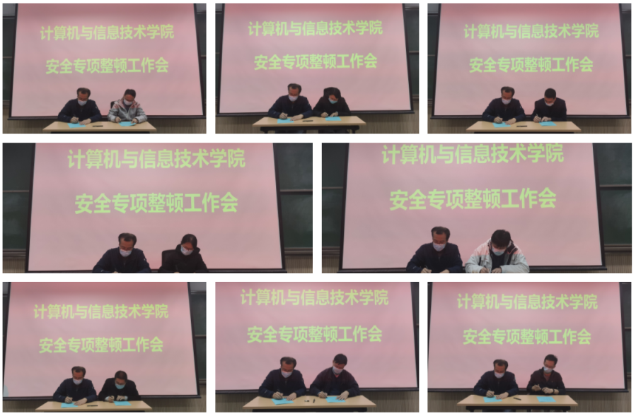 会议上宣读了安全责任内容,逐级分层落实责任,明确各系所负责人为实验室安全责任人,对实验室安全负有主要责任,并现场签署安全责任书。