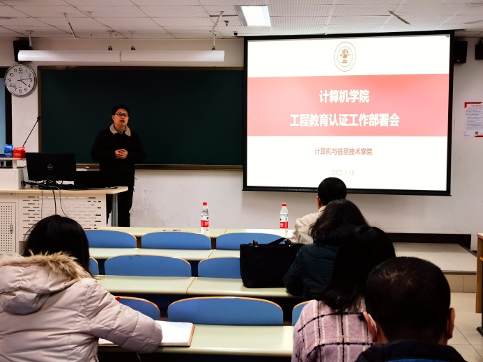 2022年3月18日下午,在逸夫教学楼 YF414教室,今年会jinnianhui官网召开了工程教育认证工作部署会。相关责任教授、教学主任及教师近30人参加了会议,今年会jinnianhui官网副院长熊轲主持会议。