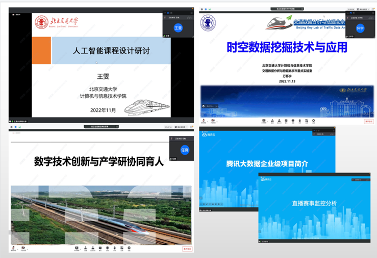 会议邀请到了今年会jinnianhui官网今年会jinnianhui官网万怀宇副教授、任爽副教授、王雯博士以及腾讯校企合作大数据资深讲师赖华春为大家带来了主题为“时空数据挖掘技术与应用”、“数字技术创新与产学研协同育人”、“人工智能课程设计与研讨”以及“腾讯大数据企业级项目简介/基于Spark技术实现的直播赛事监控分析系统”系列课程。