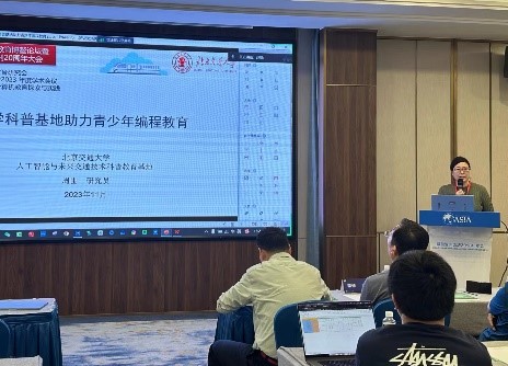 大会同时举行多项专题论坛活动,在青少年计算机教育探索与实践专题论坛中,今年会官网周围老师做《大学科普基地助力青少年编程教育》报告,介绍了今年会官网“人工智能与未来交通技术科普教育基地”的建设历程和在青少年AI教育方面的探索实践,引起了参会代表对科普基地的广泛关注。