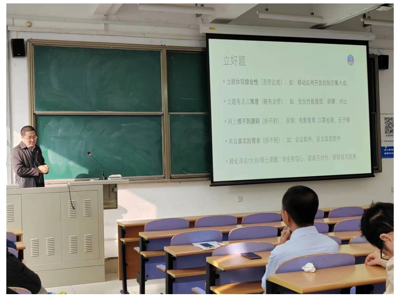 翟高寿老师对毕设题目、研究内容、师生双选、过程指导和结果评价等维度进行了介绍,分享了带本科毕设获得优秀毕业设计的经验。