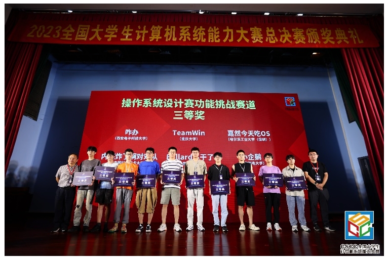 2023年8月23日,经评审组评审和组委会复核,2023全国大学生系统能力大赛决赛获奖名单正式公布。经过激烈角逐,今年会官网学生在龙芯杯中获得个人赛三等奖1项,在操作系统设计赛-功能挑战赛中获得三等奖1项。李宗辉、王博、于双元老师获得优秀指导教师奖。