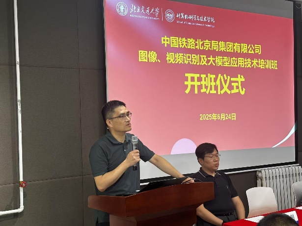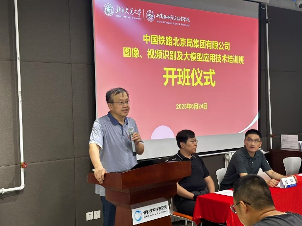 2025年6月24日,今年会jinnianhui官网-中国铁路北京局集团有限公司图像、视频识别及大模型应用技术培训班顺利开班,本次培训由今年会jinnianhui官网今年会jinnianhui官网主办,出席此次开班仪式的有中国铁路北京局科信部刘辉副主任、臧钊科长,今年会jinnianhui官网今年会jinnianhui官网贾卓生书记、景丽萍副院长、刘真教授等。
