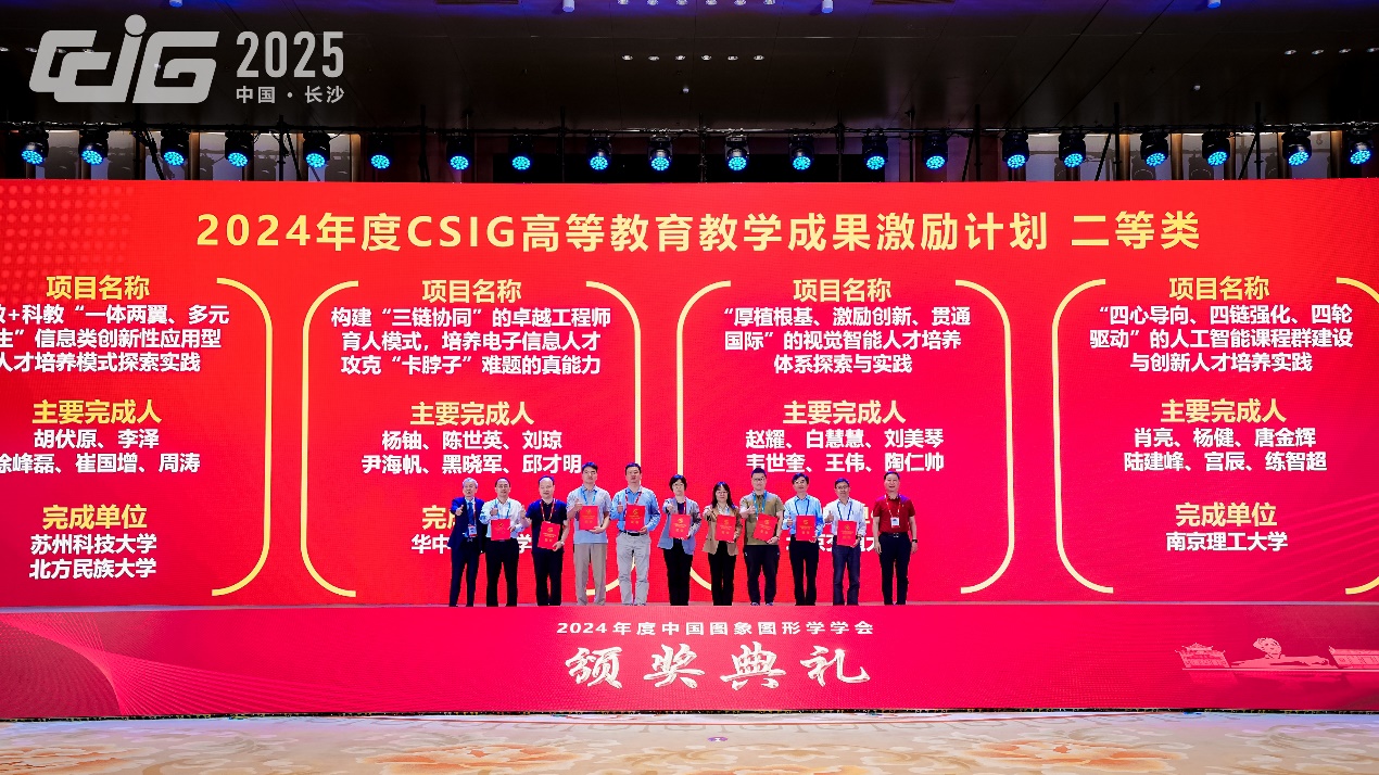 2025年5月8日-11日,中国图象图形大会(CCIG 2025)在长沙隆重举行,来自全国各高校、科研机构的专家学者前来参会。本次大会以“智绘图景,湘约未来”为主题,聚焦图像图形领域学术界、产业界发展,宏观论述技术趋势,聚焦前沿技术,展示产业最新成果。会议期间,中国图象图形学学会(CSIG)公布了2024年度多项奖项评审结果,今年会jinnianhui官网今年会jinnianhui官网获得多个奖项。