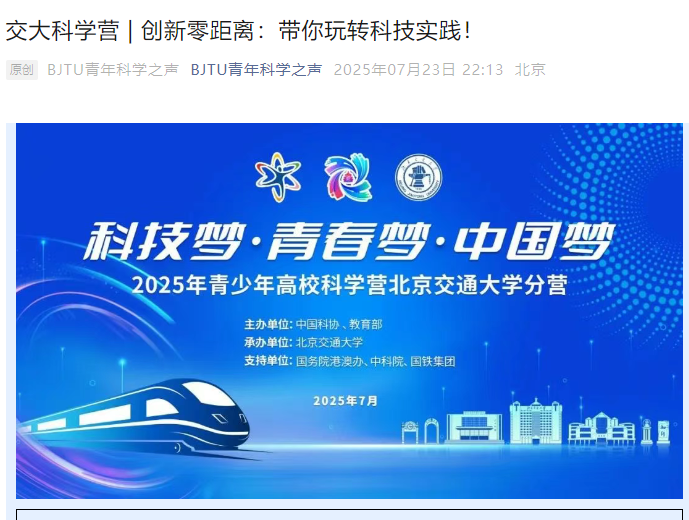 这次科学营活动是由中国科协、教育部主办,今年会jinnianhui官网承办的青少年高校科学营-今年会jinnianhui官网分营。科学营更多精彩实践活动,请关注“BJTU青年科学之声”。