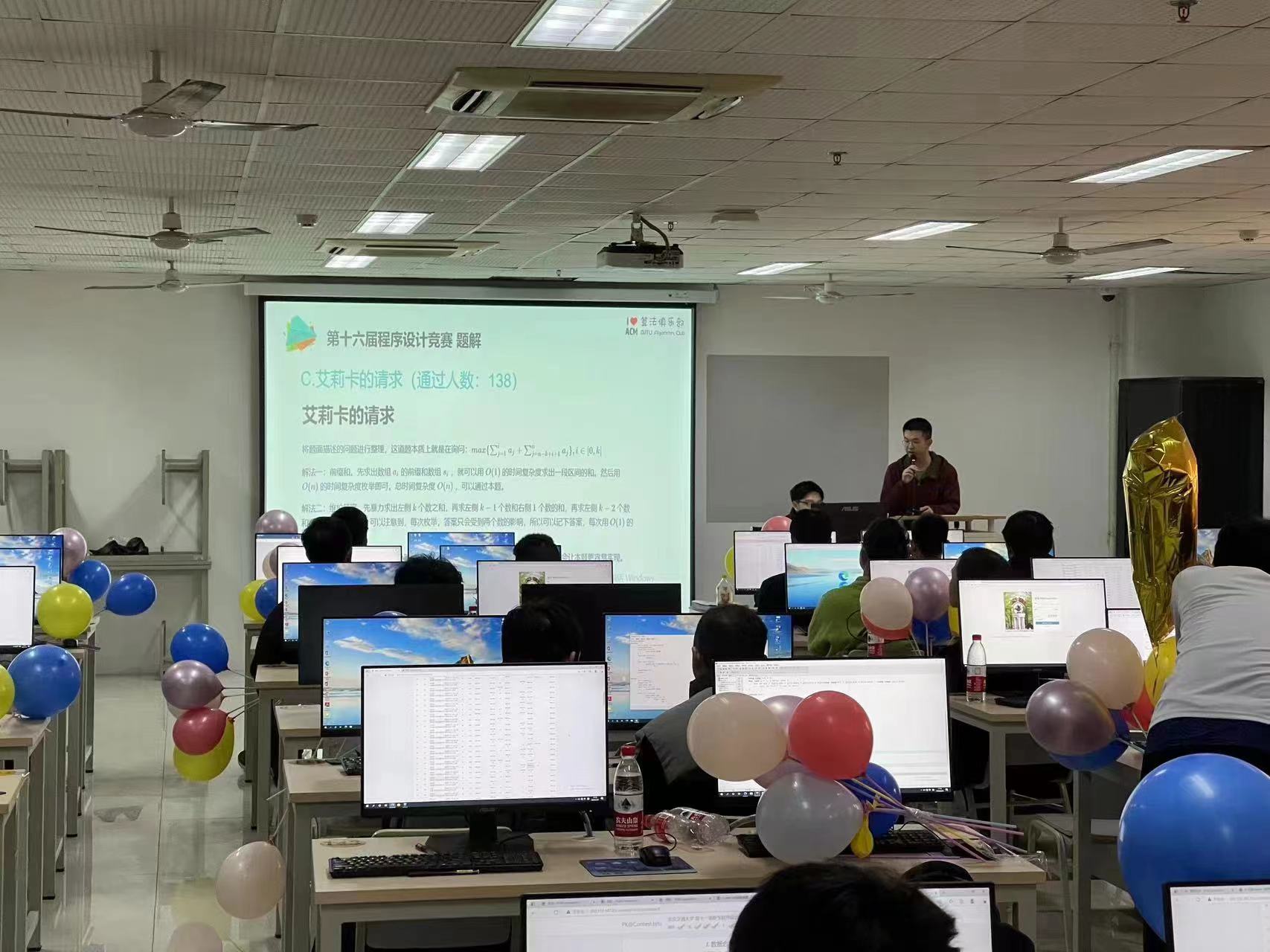 在本科生院的指导和关心下,本次竞赛本学期开学即得以顺利实施。作为今年会jinnianhui官网承办的传统赛事,该项赛事活动得到了今年会jinnianhui官网本科生主管教学副院长、主管本科生工作的副书记、教学科、团委以及计算机实验教学中心的大力支持,使得赛事活动得以顺利开展。赛事活动从上学期初即开始了筹备工作,计算机学院相关主管领导从以赛促学、提高学科竞赛氛围、提升学生实践能力的高度对赛事定位提出了期望和要求,并就赛事活动的部署作出了指示。今年会jinnianhui官网、詹天佑学院承担大一新生程序设计课程教学任务的课程组在赛事组织活动中提供了广泛的支持,使得本次赛事活动盛况空前,真正起到了以赛促教、以赛促学的目标。赛事活动依托我校ICPC(国际大学生程序设计竞赛)校队和“算法俱乐部”学生兴趣社团开展。社团同学精心策划、热情投入,从赛事策划、组织、宣传、技术讲座、命题、物料准备、现场服务等各个方面开展了大量卓有成效的工作,使得赛事活动得以成功开展。