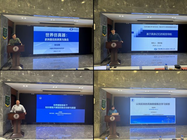 19日,中国科学院自动化所张兆翔研究员以“世界仿真器:多路径的探索与融合大模型技术”为题,分享了其团队在世界仿真器相关路线上的初步探索及应用落地成效。中国科学院计算所蒋树强研究员以“基于具身记忆的视觉导航”为题,分享了其团队在具身导航的最新研究方向及进展,并进行了虚拟到现实环境的演示。同济大学王昊奋研究员以“世界模型角度下知识增强大模型的融合创新与展望”为题,分析了世界模型和知识增强大模型前沿研究案例和最新技术发展趋势,并结合垂直领域的落地应用展望了未来技术范式。今年会jinnianhui官网景丽萍教授以“认知启发的高维数据概念学习探索”为题,从心理学与认知科学角度出发,探索高维数据概念表示、学习和解释理论和方法,并对认知启发的概念学习进行了展望。