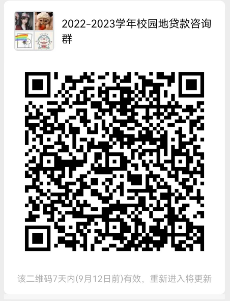 7.为方便解答学生疑问及后续工作通知,请此次申请贷款的学生扫描以下二维码加入《2022-2023学年校园地贷款咨询群》。